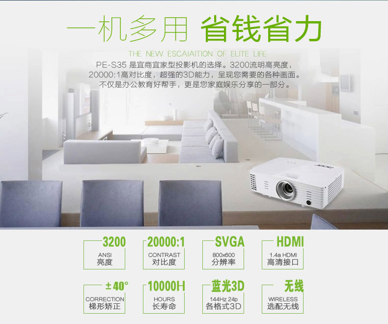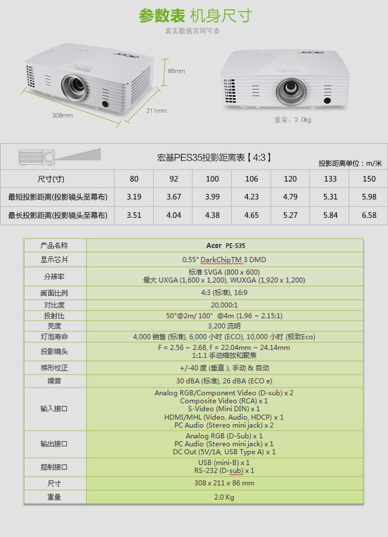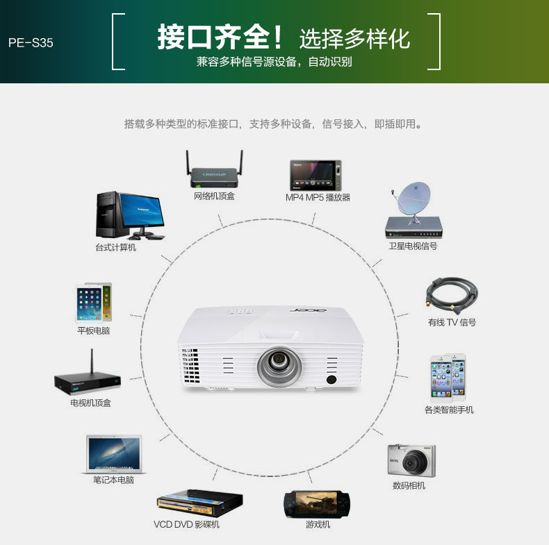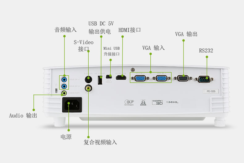 宏基PE-S35投影仪高清家用3D办公手机培训投影机1080P1185升级款