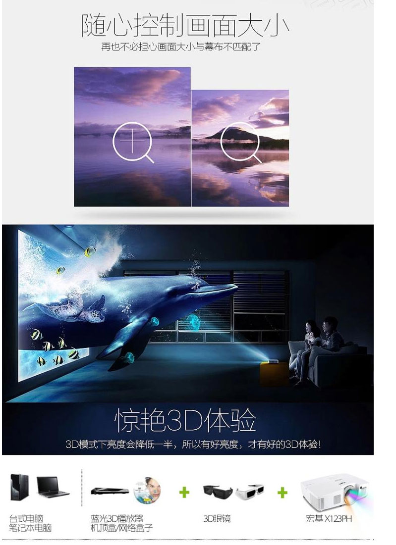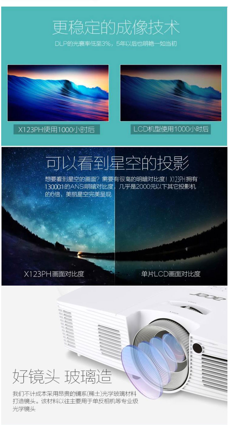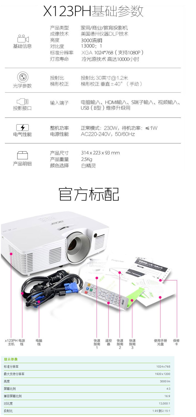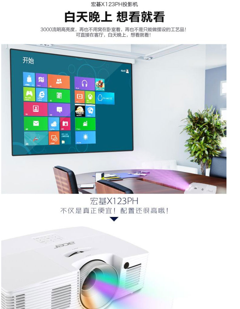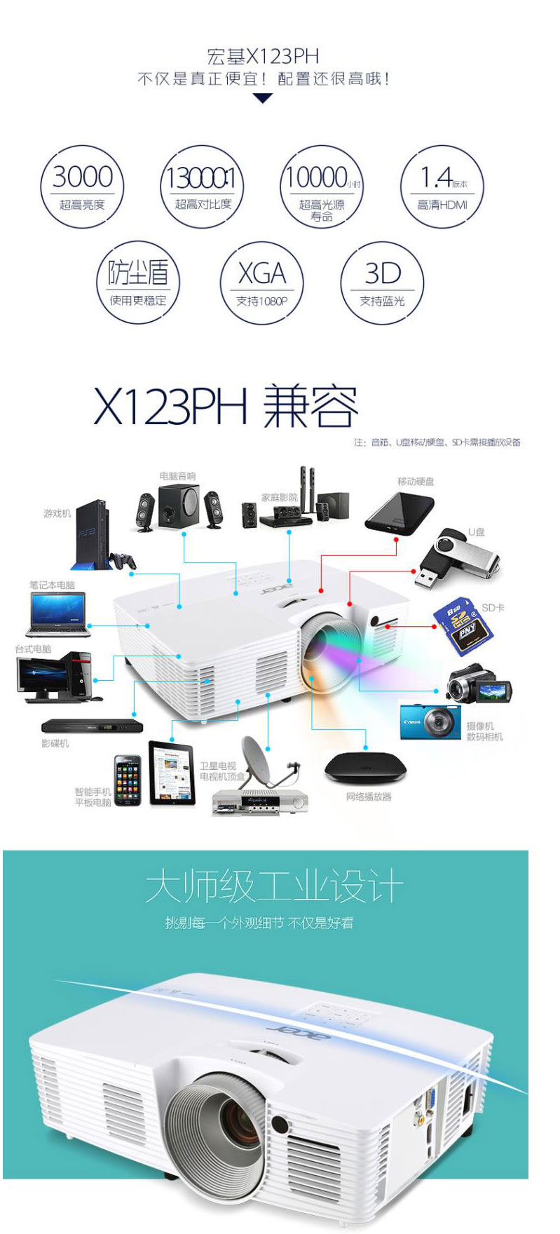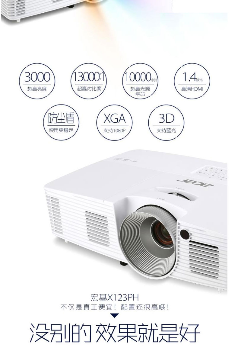 宏基X123PH/X125H投影仪XGA高清3D商务办公会议投影机高亮培训