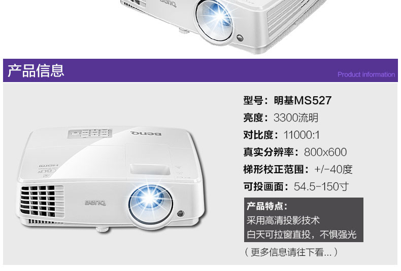 明基MS527家用投影仪蓝光3D家庭影院投影机1080p高