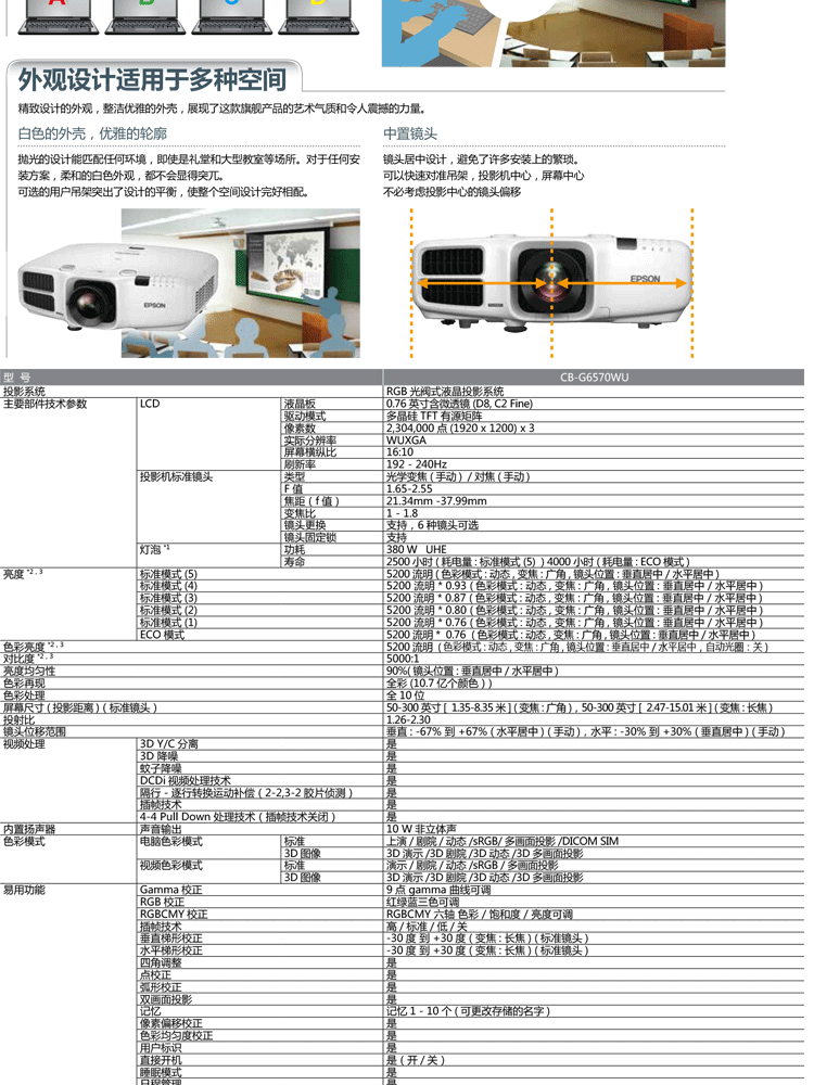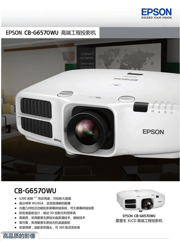 爱普生G6570WU投影仪高清工程影院高亮5200流明高亮